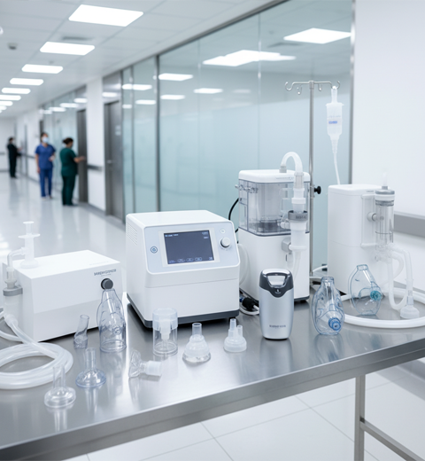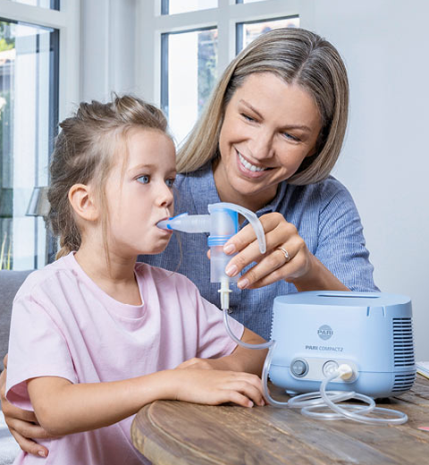 Además de dispositivos de inhalación y nebulizadores, nuestra cartera también incluye productos para la espirometría, dispositivos de inhalación para facilitar la aplicación de aerosoles, así como soluciones de inhalación a base de sales, antibióticos inhalados y opciones de terapia complementaria.